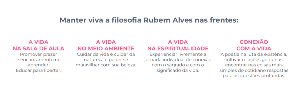Promovemos a inclusão, a diversidade e o respeito à natureza, seguindo os valores humanistas e a visão holística que Rubem Alves tanto defendeu.